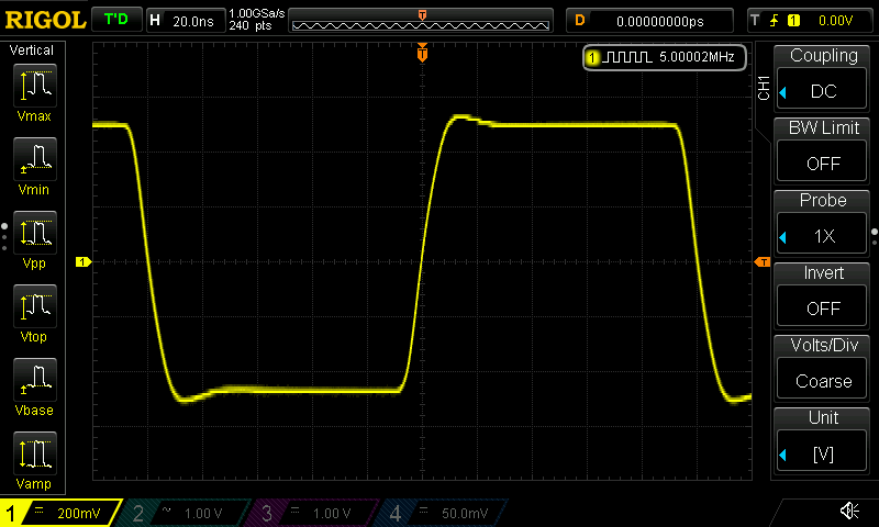 Here are a few measurements done with a square wave from the JDS6600 at 5MHz into a 50 ohm load.